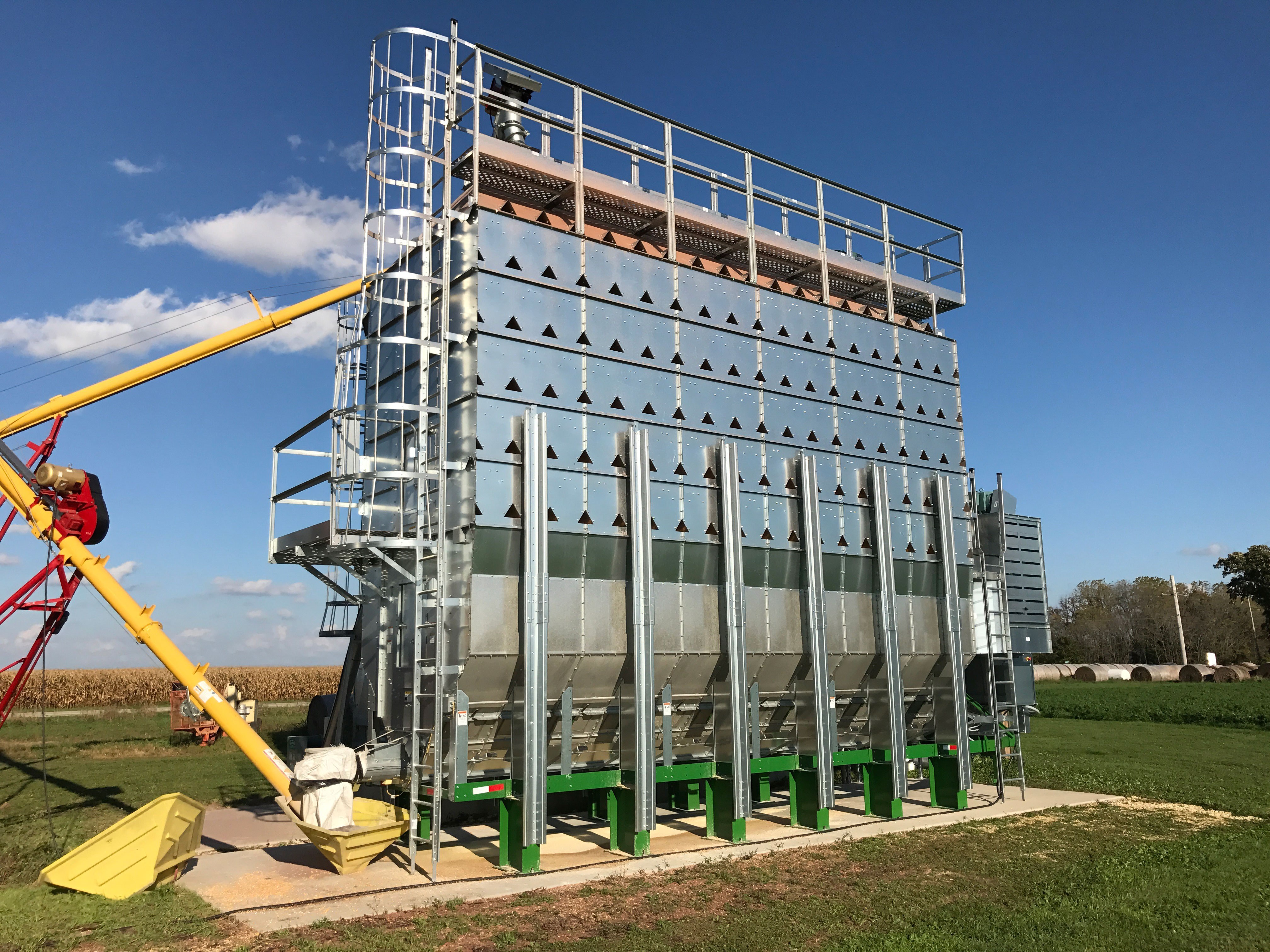 - Sukup’s mixed-flow grain dryers use 2-foot tall drying tiers. Each tier contains a row of triangular exhaust ducts on the outside and intake ducts facing the center plenum. This setup allows warm air to move evenly through the grain, ensuring consistent drying across the entire column.