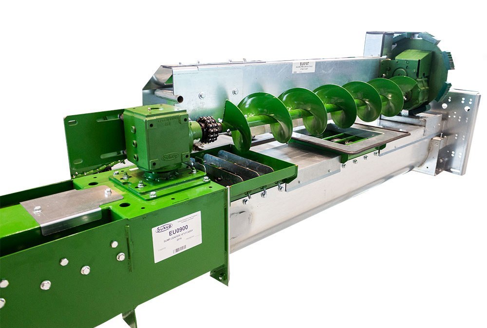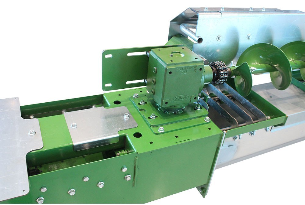 The Sukup U-Trough Powersweep combines innovative design and efficient performance to optimize grain unloading processes. This system is tailored to handle high grain capacities efficiently, capable of moving up to 6,000 bushels per hour using gravity unload. This system requires 13 ½ in. floor clearance and features a flexible pivot (double chain sprocket) that allows the sweep to follow the floor’s contour but can be upgraded with a paddle sweep.