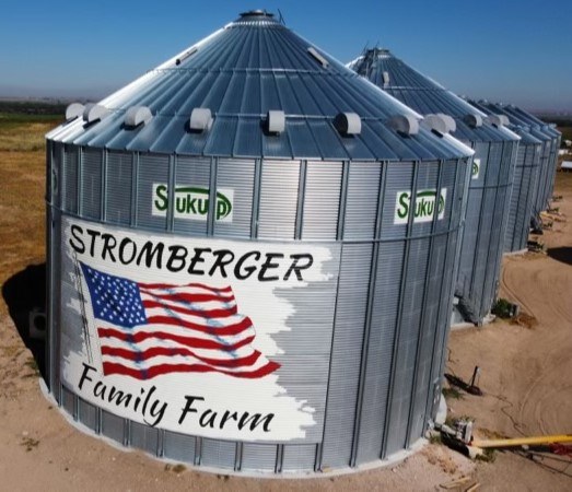 In Iliff, CO, Stromberger Family Farms took full advantage of an opportunity to display a mural on their Sukup bin to passing interstate drivers.